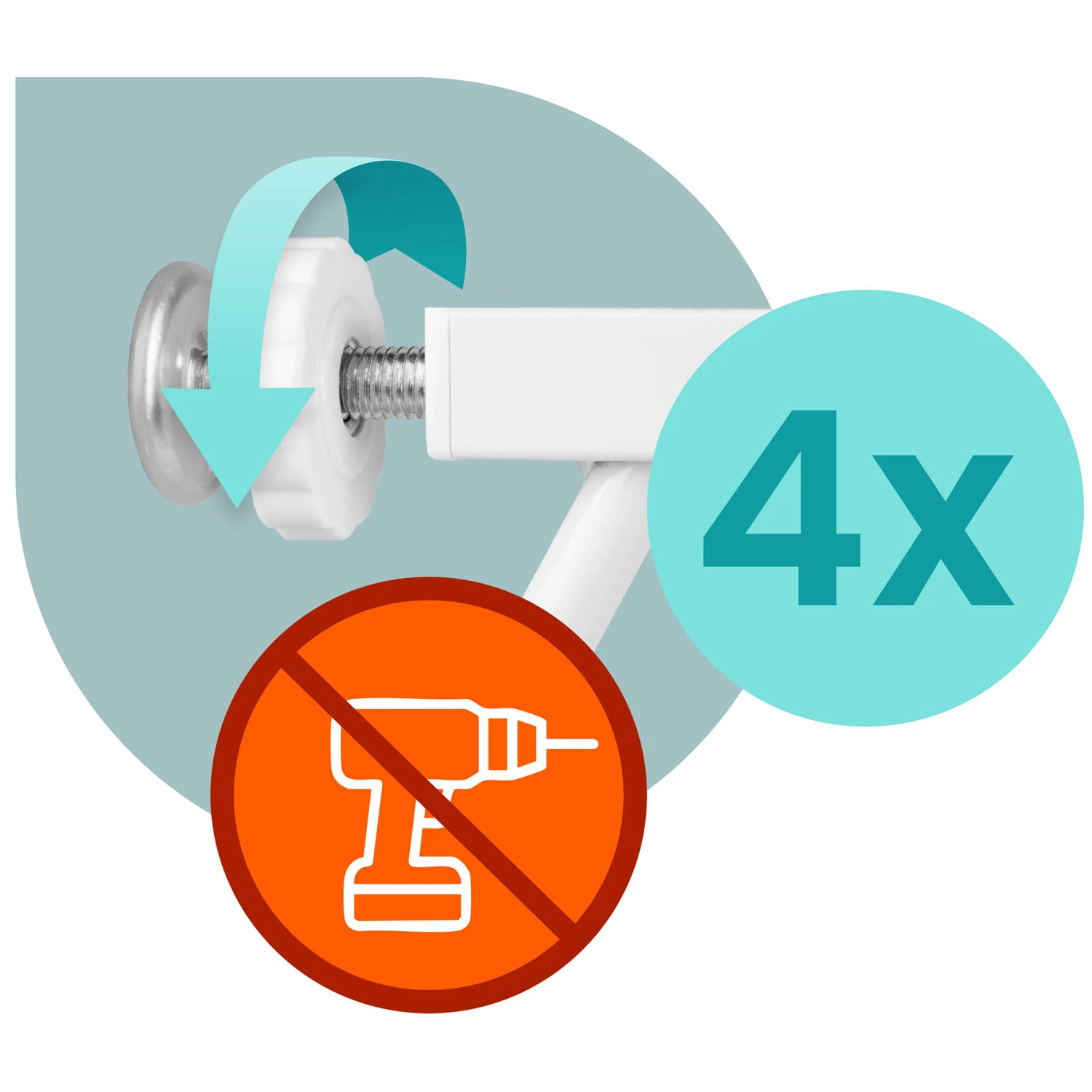 Nie musisz się martwic o uszkodzenie futryny lub ściany. Gdy barierka nie jest już potrzebna, łatwo ją zdemontujesz.