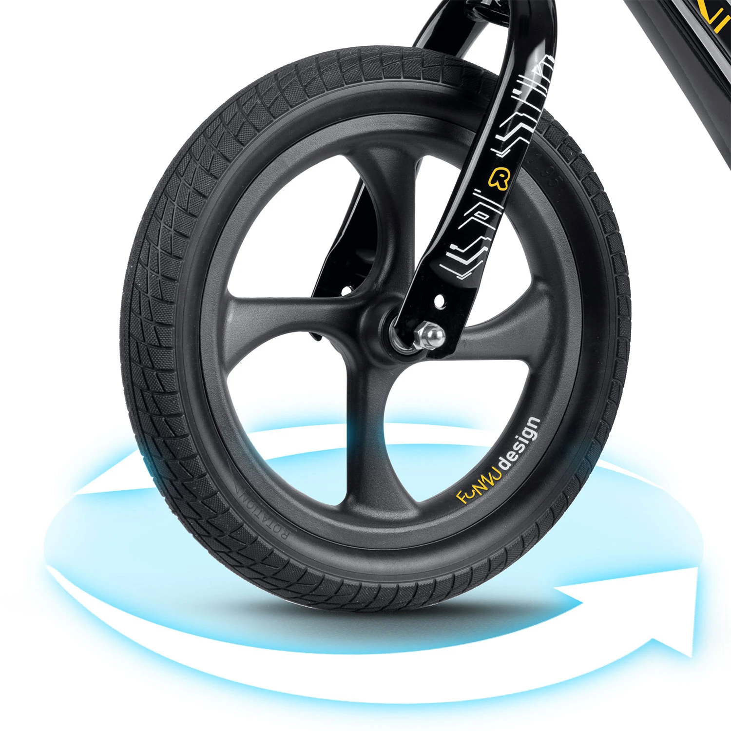 Koła: duże, solidne koła z pianki EVA z wytrzymałymi oponami, zapewniające stabilność i płynność jazdy. Cicha praca podczas jazdy sprawia, że rowerek nie jest uciążliwy dla ucha nawet podczas jazdy w domu.