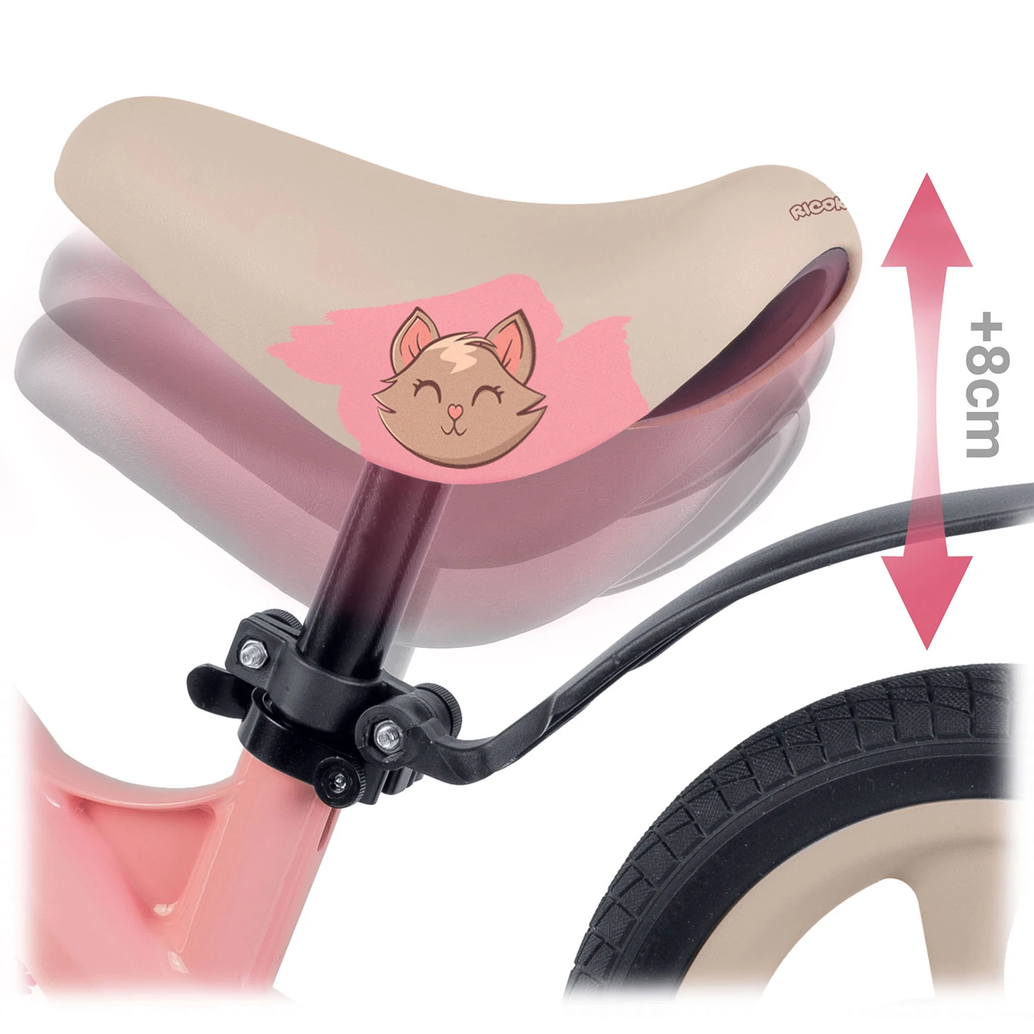 • Dłuższy okres użytkowania: możliwość regulacji wysokości siedziska aż o 8 cm pozwala dostosować rowerek do zmieniającego się wzrostu dziecka, dzięki czemu rowerek może być użytkowany przez dłuższy czas.