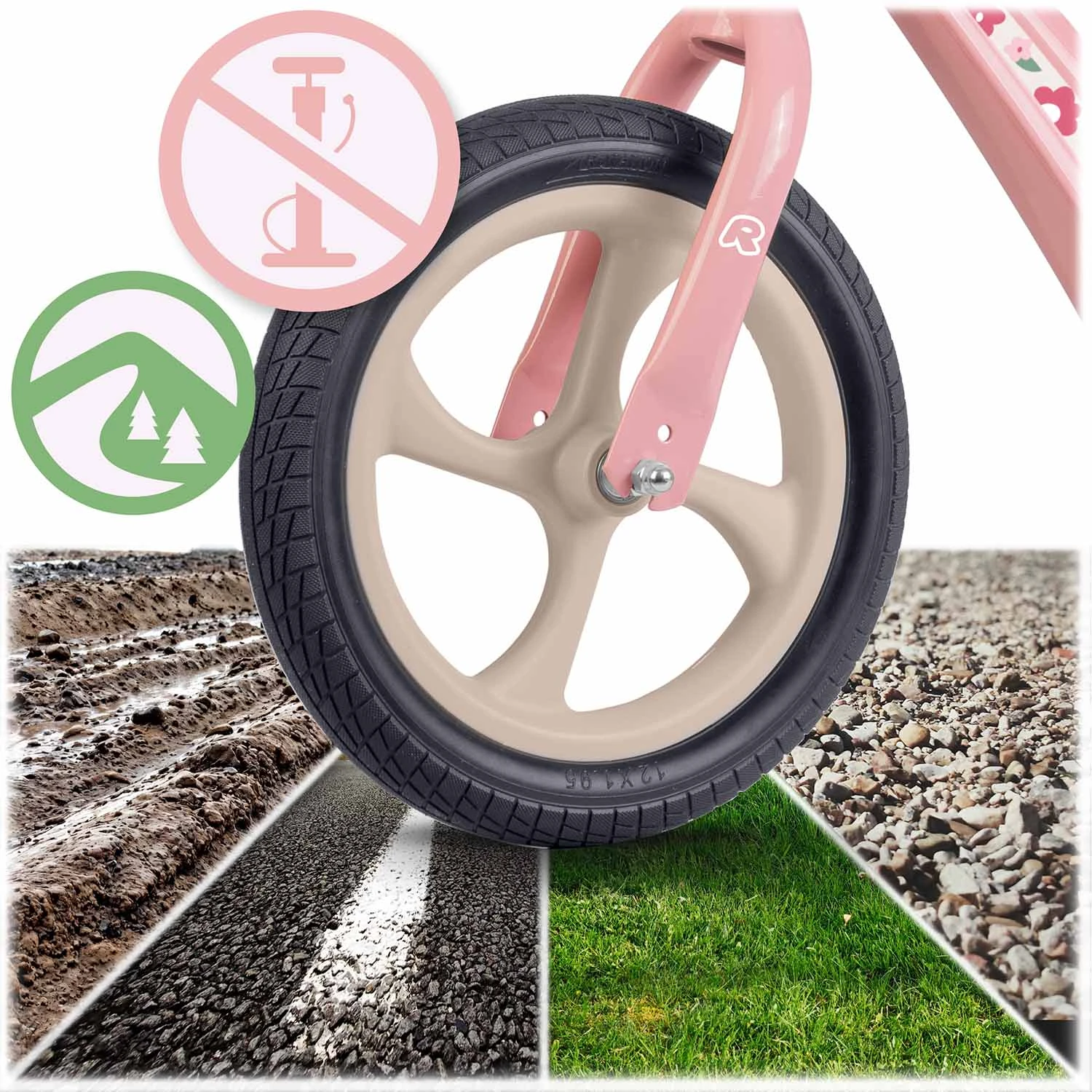 Bez względu na nawierzchnię — trawa, asfalt, piasek czy błoto — opony z pianki zapewniają bezawaryjną, stabilną i wygodną jazdę. Zero przebitych opon, zero przestojów! Pianka EVA łatwo się czyści, nie chłonie brudu i zachowuje dobry wygląd, nawet po intensywnym użytkowaniu.