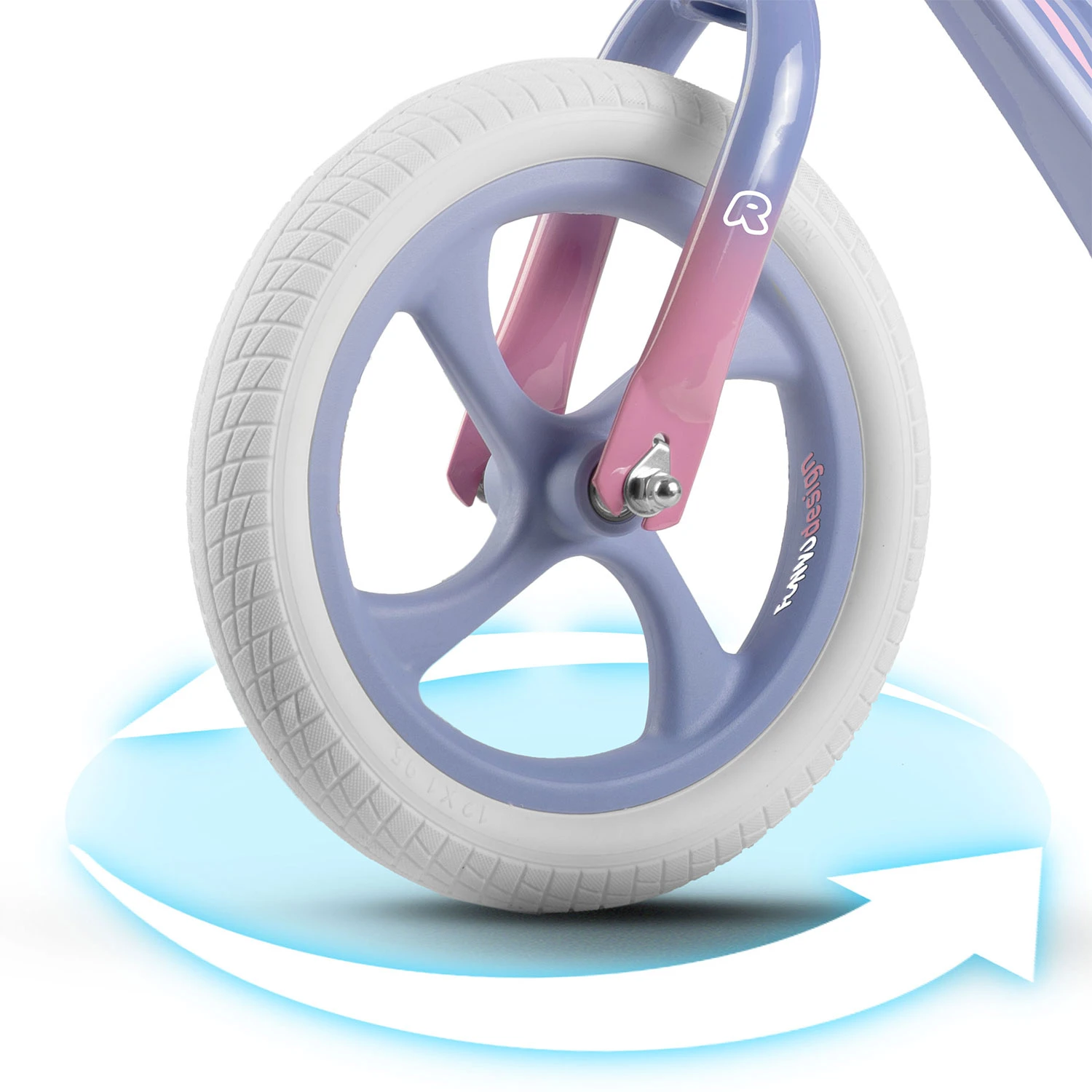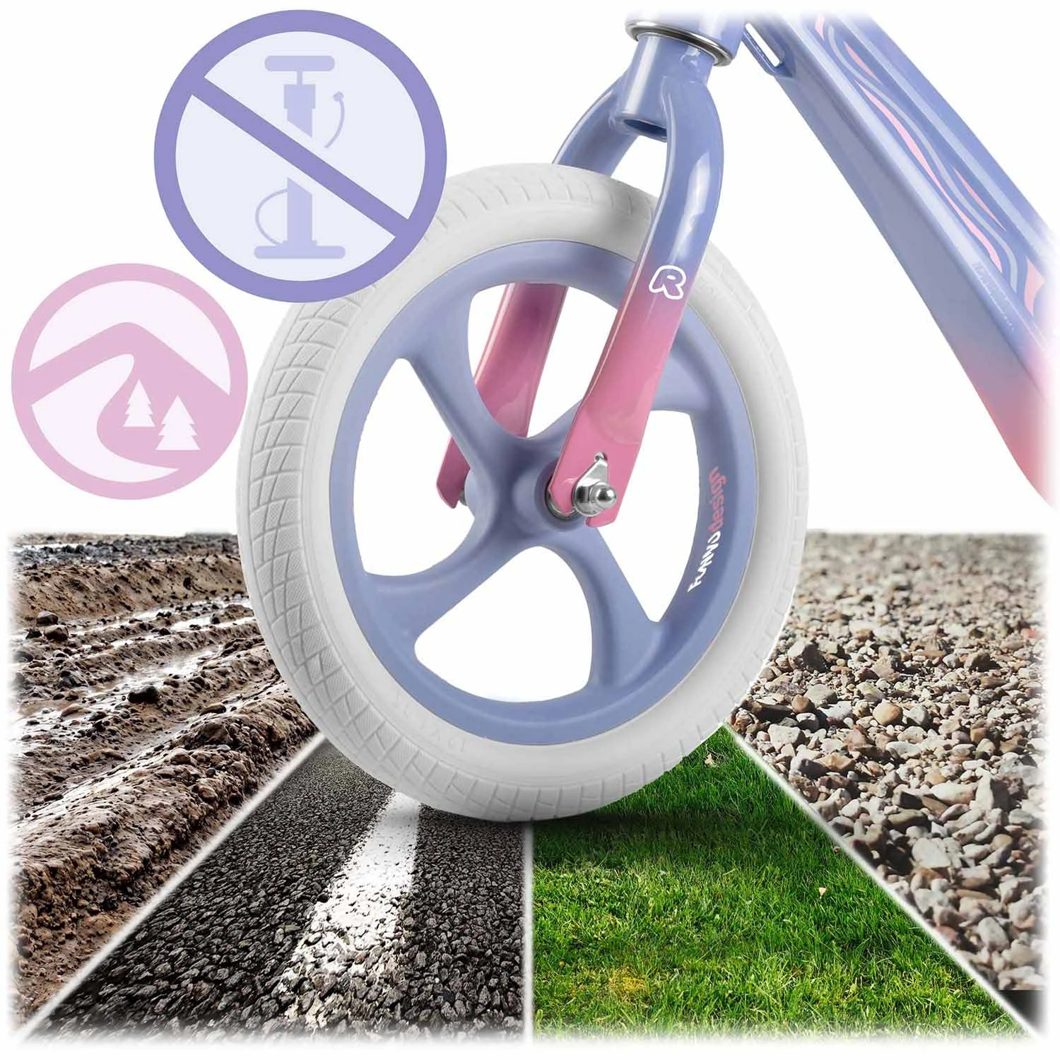 Koła: duże, solidne koła z pianki EVA z wytrzymałymi oponami, zapewniające stabilność i płynność jazdy. Cicha praca podczas jazdy sprawia, że rowerek nie jest uciążliwy dla ucha nawet podczas jazdy w domu.