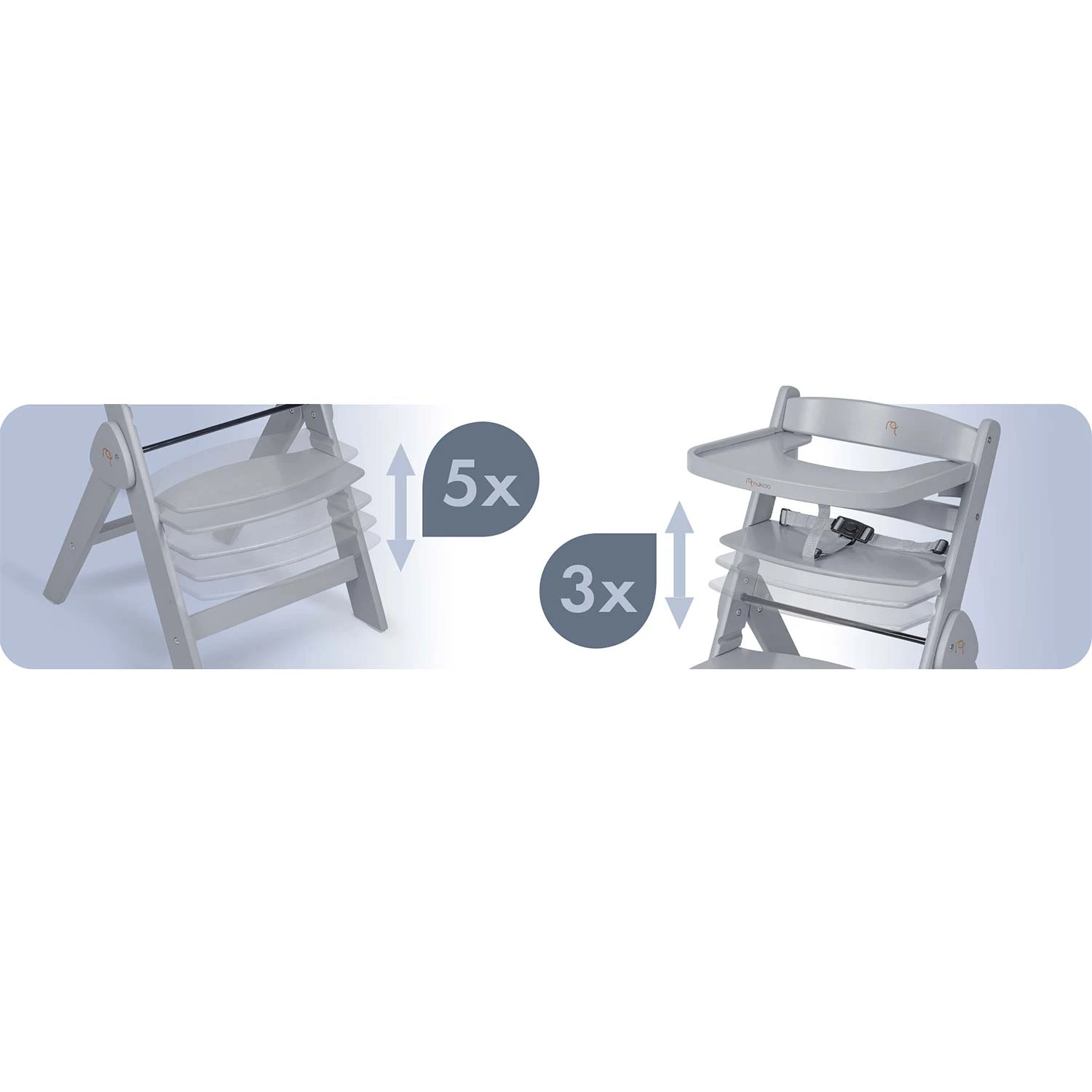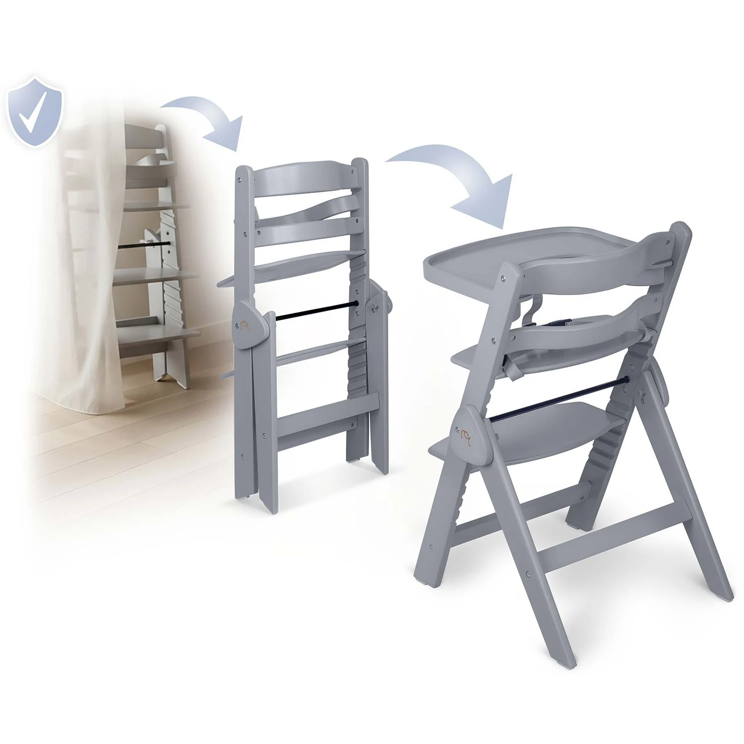 Kiedy Twoje dziecko rośnie, krzesełko ewoluuje! Wystarczy zdjąć tackę i dopasować wysokość siedzenia i oparcia na nogi a krzesełko zmienia się w idealne miejsce do jedzenia przy rodzinnym stole. Stabilne, ergonomiczne i zawsze na właściwej wysokości.
