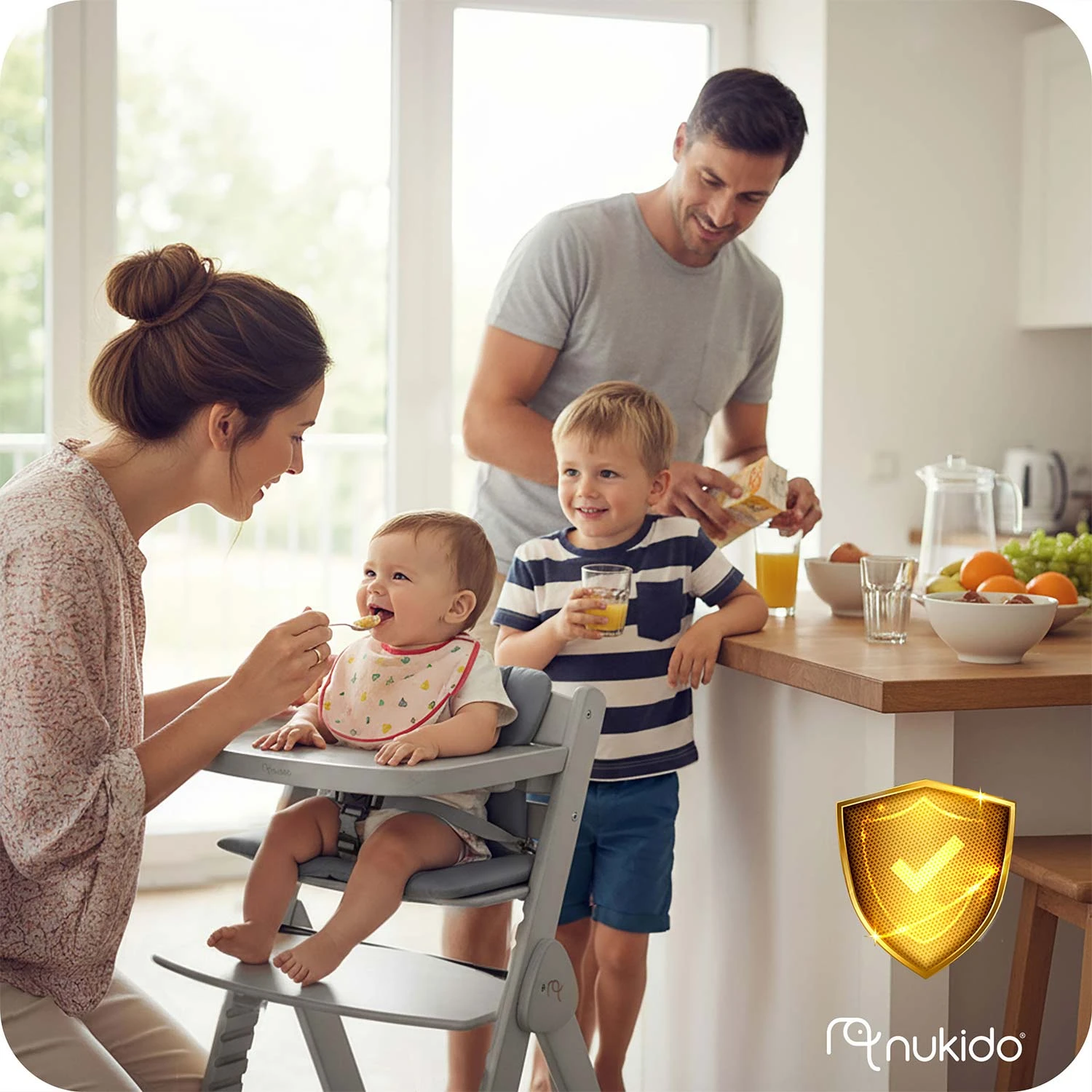 Krzesełko marki Nukido jest w pełni certyfikowane, co zapewnia pełne bezpieczeństwo Twojemu maluszkowi.