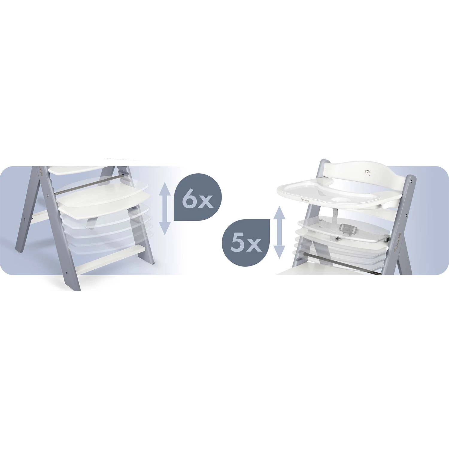 Kiedy Twoje dziecko rośnie, krzesełko ewoluuje! Wystarczy zdjąć tackę i dopasować wysokość siedzenia i oparcia na nogi a krzesełko zmienia się w idealne miejsce do jedzenia przy rodzinnym stole. Stabilne, ergonomiczne i zawsze na właściwej wysokości.