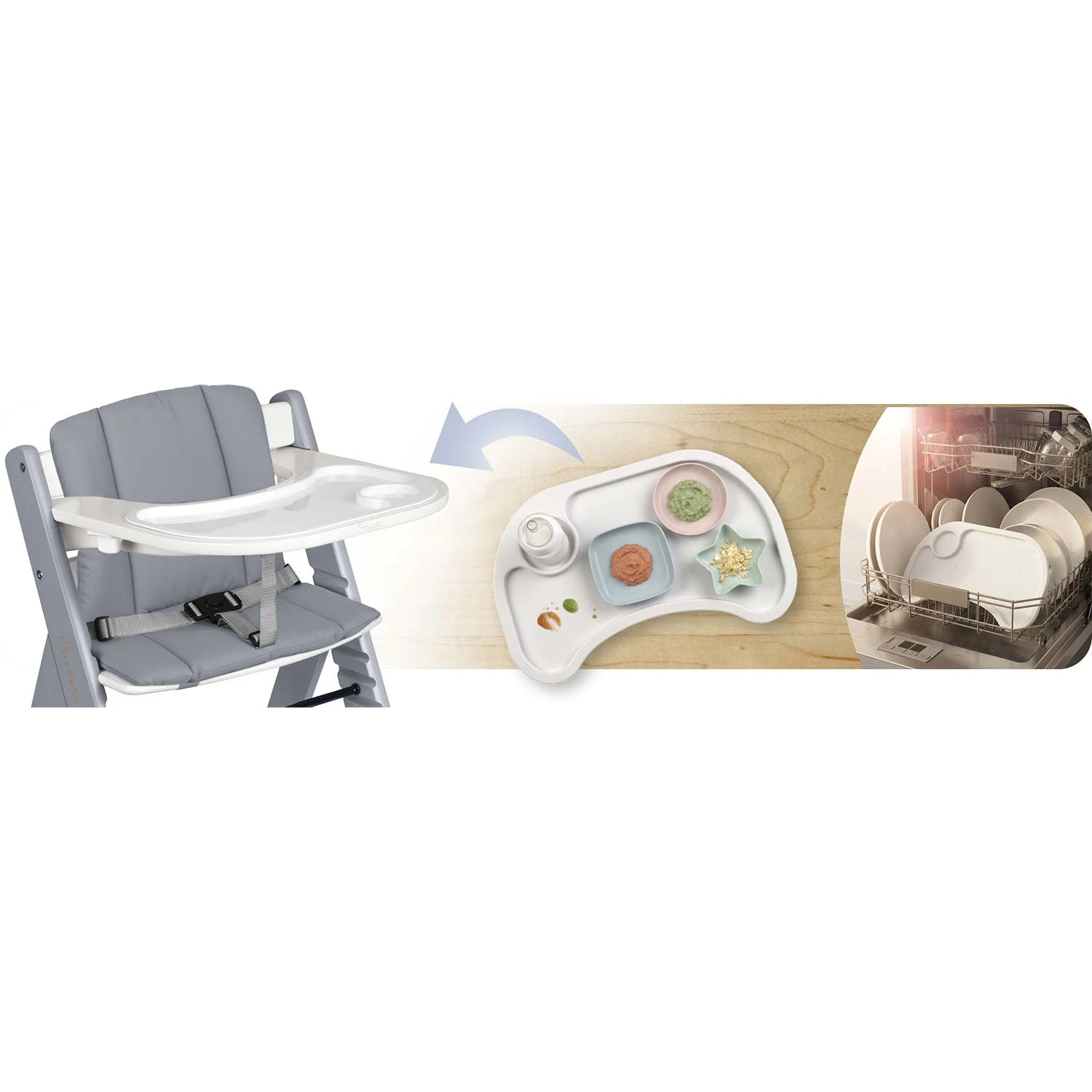 ✅ Wspieranie prawidłowej postawy: starannie zaprojektowane wyprofilowane oparcie i regulacja poziomów krzesełka pomaga zachować właściwą postawę zarówno podczas jedzenia, jak i zabawy.