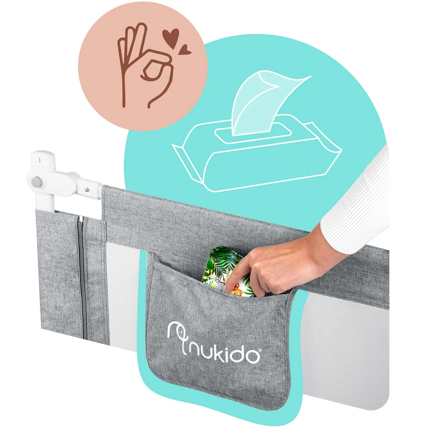 Zawsze pod ręką — praktyczny schowek na smoczek, zabawkę czy inne akcesoria dziecięce.