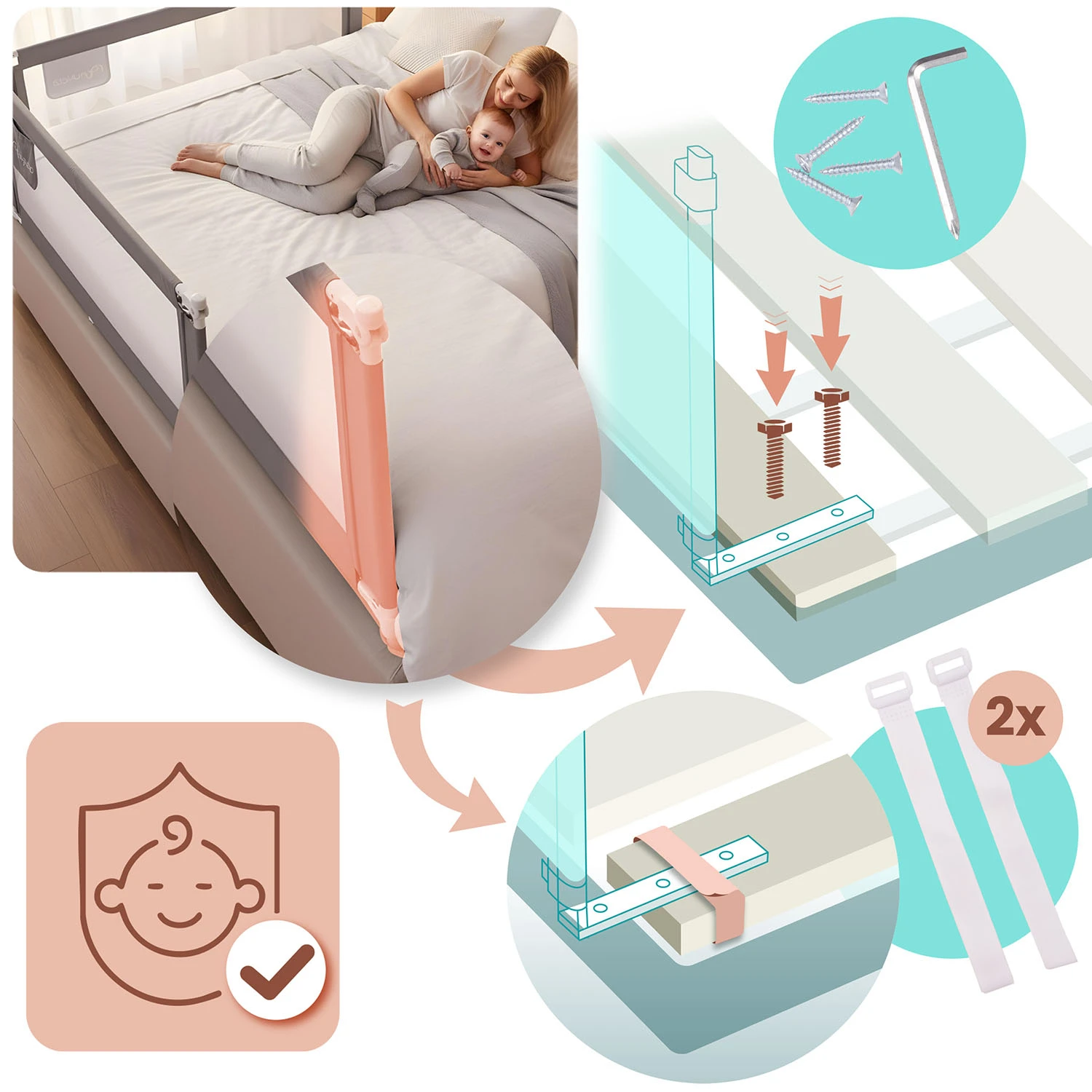 - Szybki montaż — wystarczy przykręcić do stelaża łóżka.