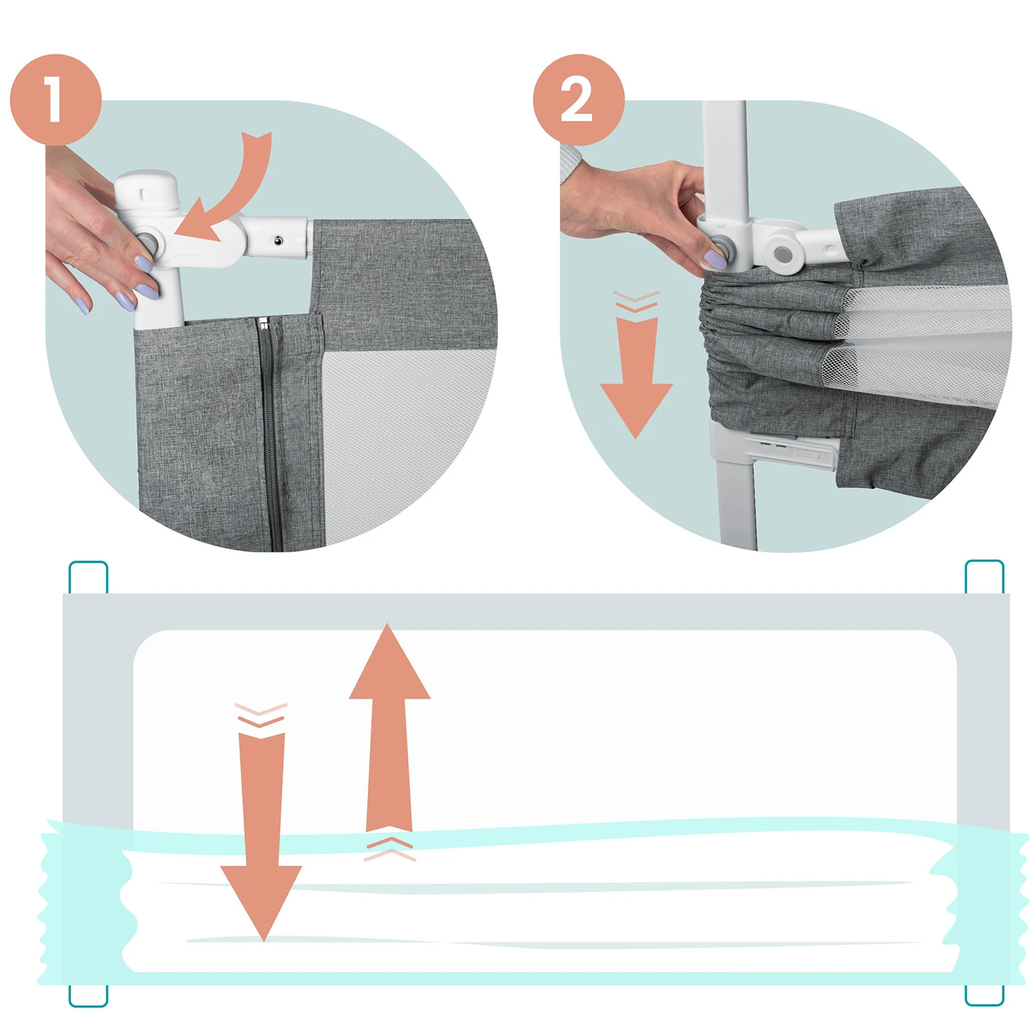 Barierka została wyposażona w trwałą i przewiewną siatkę, która pozwoli na obserwację śpiącego dziecka.
