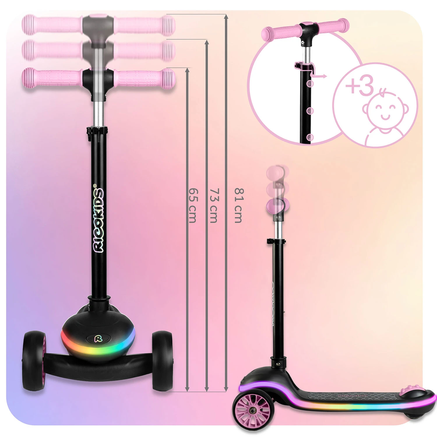 Hulajnoga Ricokids Leddi to świetna propozycja dla aktywnych dzieci. Zwrotna i lekka konstrukcja zapewnia wygodną jazdę, a dodatkowo posiada podświetlany podest LED z 20 trybami.